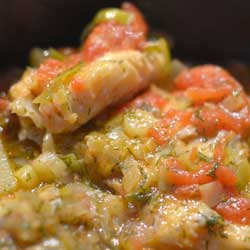 Min mormors enkla fiskgryta med vitfisk, tomat och dill.